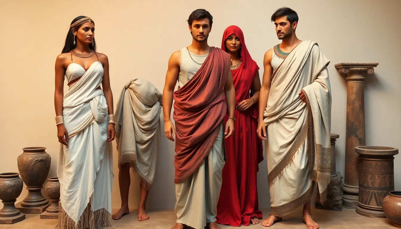 Greeks excelled in creating garments that draped elegantly around the body. The chiton, a type of tunic, displayed versatility in style and often featured lightweight fabrics like linen and wool. Citizens draped their clothing in ways that emphasized form while allowing for freedom of movement. Himation, a cloak worn over the chiton, added layers to their outfits, promoting a profound sense of sophistication. Greek fashion reflected ideals of beauty and harmony, connecting clothing to the cultural emphasis on aesthetics and philosophy.